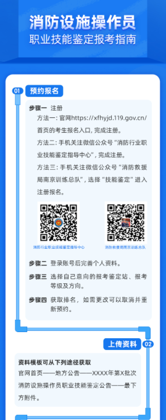 面向初次報名的考生全天候開放報名渠道??忌?/span>通過“消防職業(yè)技能鑒定考試網(wǎng)”或“消防行業(yè)職業(yè)技能鑒定指導(dǎo)中心”、“南京訓(xùn)練總隊(duì)”微信公眾號進(jìn)行預(yù)約報名。具備補(bǔ)考資格的考生請于每月15日至17日登陸“消防職業(yè)技能鑒定考試網(wǎng)”進(jìn)行補(bǔ)考報名。