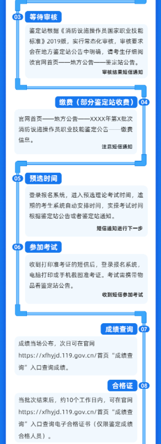 考生須符合《消防設(shè)施操作員國家職業(yè)技能標(biāo)準(zhǔn)(2019年版)》申報條件,資料模板可在官網(wǎng)“通知公告”中點(diǎn)擊各鑒定站名稱查看。